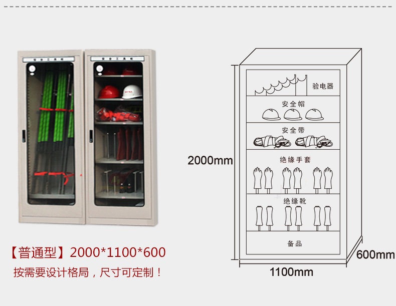 電力安全工具柜又稱安全工器具柜,按功能可以分為普通排風(fēng)除濕柜,智能烘干除濕柜,智能抽濕除濕柜等 外殼選用1.2優(yōu)質(zhì)冷板,采用磷化鋅系、藝術(shù)型靜電噴涂,高強(qiáng)度鋼化透明玻璃(外觀色為微機(jī)灰)。接地線均配有接地線繞線架及帶夾反光編號牌,使接地線纏繞規(guī)范不易損壞,擺放整齊使用方便;絕緣手套配有防粘連撐板,絕緣擋板、絕緣棒、驗(yàn)電筆、操作桿均設(shè)有橡膠墊定位卡,安全帶、腳扣、鑰匙設(shè)有專用掛鉤,標(biāo)示牌按種類分格放置,圍網(wǎng)配有專用包,網(wǎng)桿配有專用筒,網(wǎng)桿座分格放置,防毒面具配有專用箱,呼吸器設(shè)有專用滑板。廣泛應(yīng)用于各種電壓等級的變電站、集控站、線路工區(qū)以及電力公司客服中心等單位和部門,并適應(yīng)不同溫濕度地區(qū)的使用。